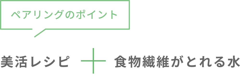 第1回は、“サーモンとキャベツのハーブ蒸し”と“食物繊維がとれる水”を組み合わせた「美活ペアリング」です。ぜひ、おためしください。